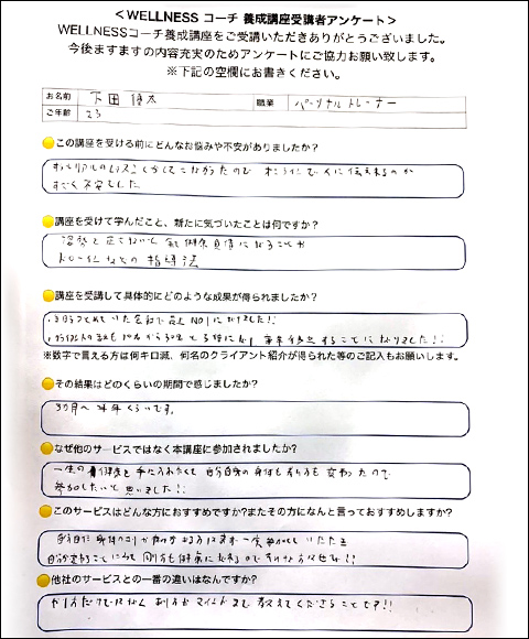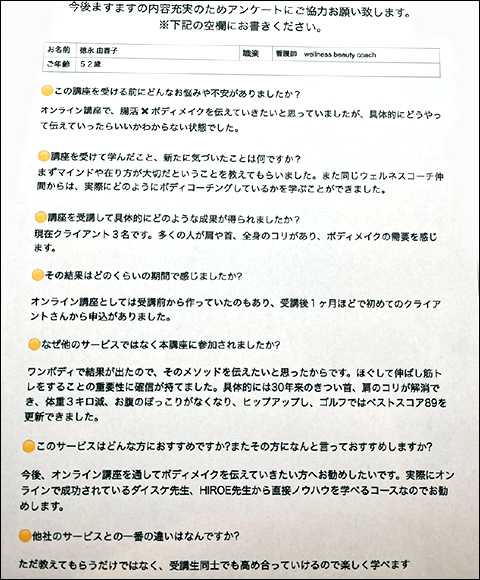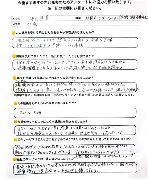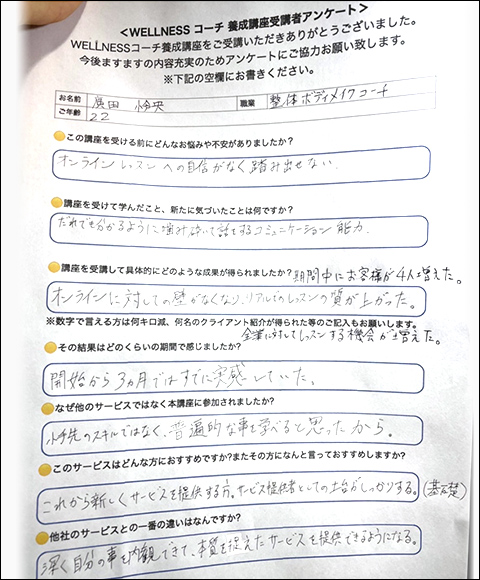 ですが、ウェルネスコーチでは本質の技術を習得し伝えるので目の前のお客さまを根本的に改善することができます。